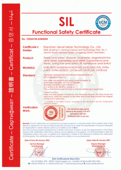 隨著工業(yè)化工領(lǐng)域的工廠對儀表的安全要求越來越高,避免由于設(shè)備或者管理造成的生產(chǎn)安全事故的發(fā)生,采購單位對儀表的質(zhì)量以及安全等級越來越重視?;跐M足不斷變化的市場需求,公司研發(fā)部門技術(shù)人員于2020年12月陸續(xù)開始整理物位儀表全系列產(chǎn)品的資料并送審檢驗(yàn),經(jīng)過專業(yè)機(jī)構(gòu)的對產(chǎn)品的材料審核,最后于2022年1月份成功通過認(rèn)證,取得SIL3等級認(rèn)證證書。