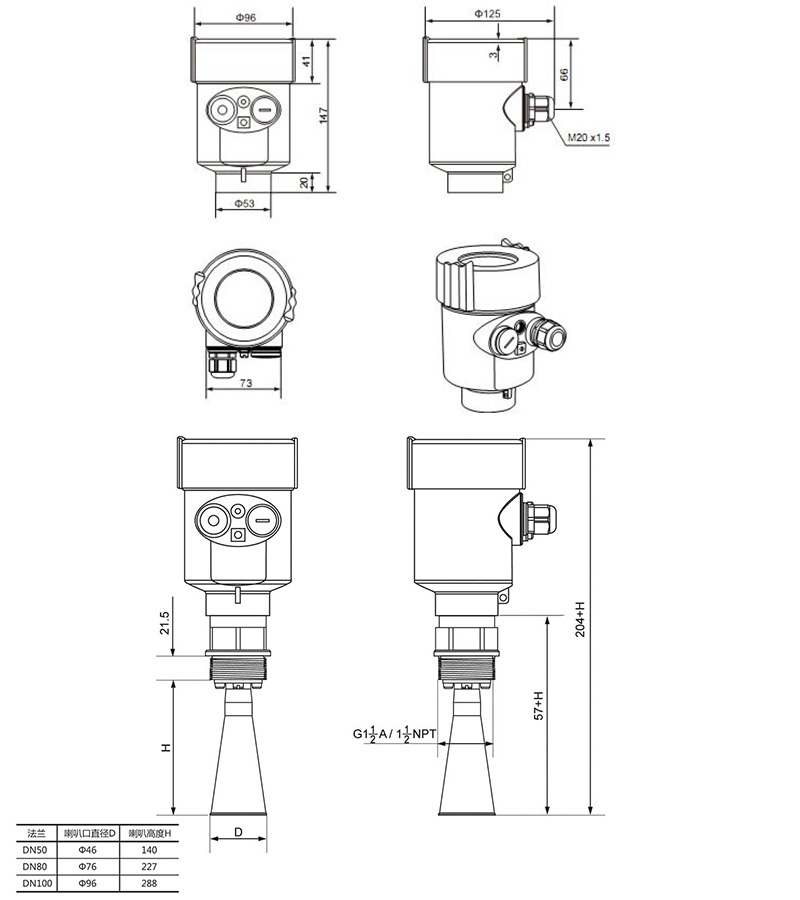 過程連接: 螺紋G1 1/2”A/法蘭/直角支架