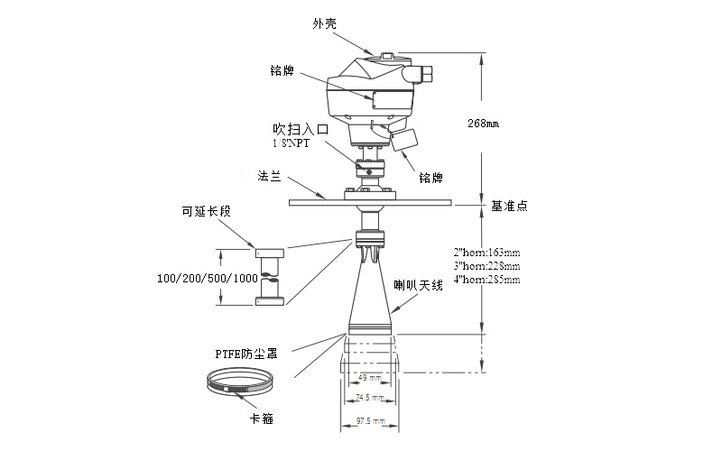 測量盲區(qū):0.5m