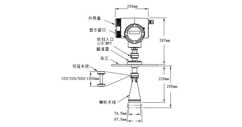 發(fā)射頻率:24.2~25.2GHZ調(diào)頻連續(xù)波