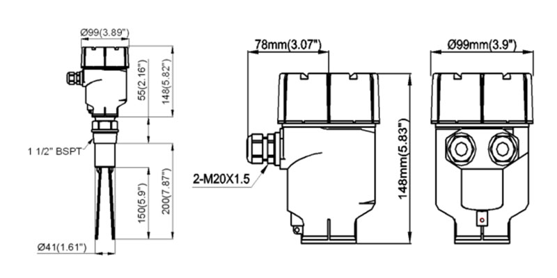 | 加長型音叉料位開關(guān)尺寸圖 |
