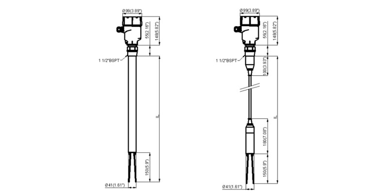| 加長型音叉料位開關(guān)尺寸圖 |