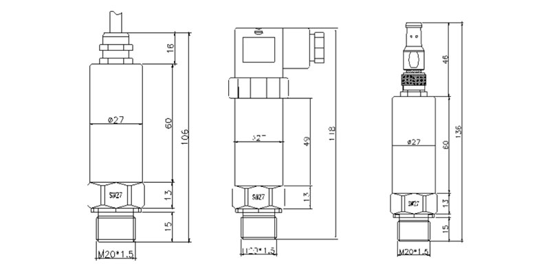 | 緊湊型壓力變送器尺寸圖 |